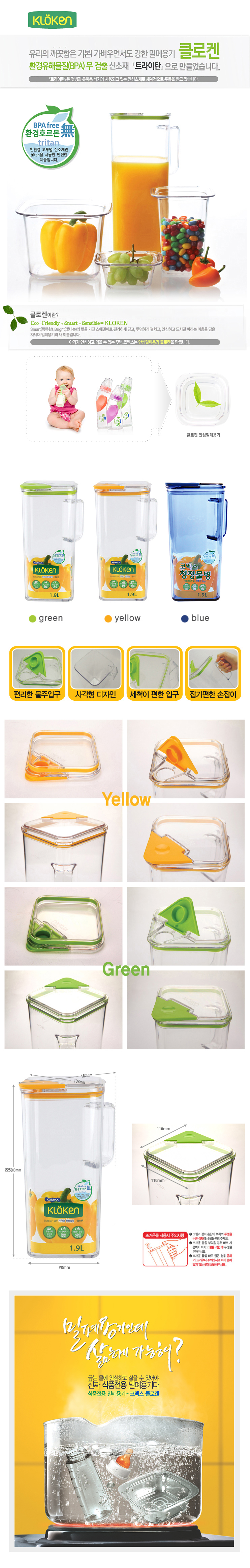 > 클로켄 청정물병 1.9L[그린+옐로우+블루]