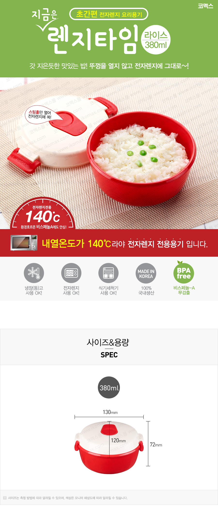 home > 밀폐/보관용기 > 코멕스 > 코멕스 지금은 렌지타임(라이스) 380ml